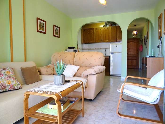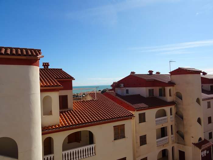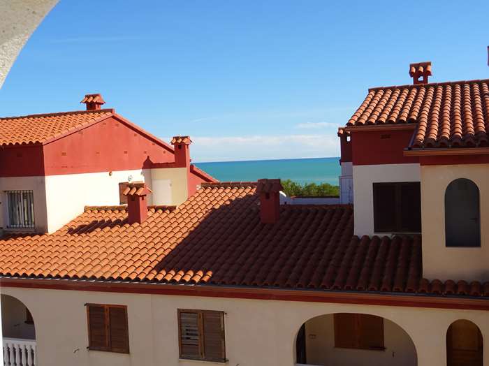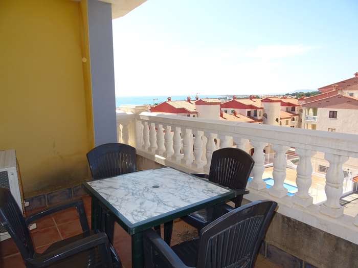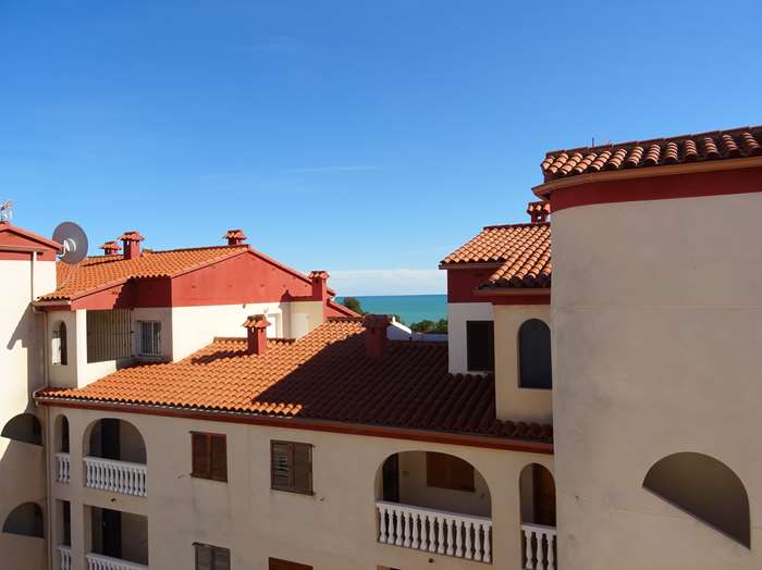 Con vistas al mar desde la terraza. Ideal para los amantes de la naturaleza y que busquen tranquilidad. Apartamento de dos dormitorios, cocina americana, bañó y con terraza de 8 m2. Urbanización con piscina al lado del parque natural Sierra de Irta considerado como uno de los Parques Naturales mas fascinantes de la península, donde se unen las mejores playas de la costa azahar con el parque natural, con más de 60 km de rutas senderistas homologadas. No tiene parking pero esta en una zona tranquila en la que es fácil aparcar cerca de la vivienda
